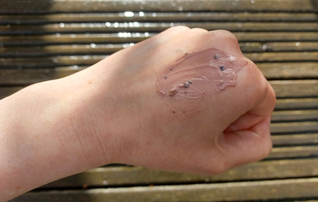 I use it twice a week. I prefer to apply MARY & MAY Vegan Rose Hyaluronic Hydra Wash-Off Pack with my fingers rather than with the applicator – it’s just my personal preference. The mask is easy to apply and I can feel these tiny exfoliators on my fingers. The fragrance is slight and not irritating at all. I don’t even feel it. I keep the mask on my face for 15 minutes as advised on the box. It dries quickly and I can even feel that the skin becomes quite tight if I keep it longer. When it comes to the mask removal, I would say the clay washes away easily except these dark exfoliators which requires a bit more effort.