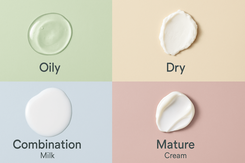- Oil cleanser: Lightweight cleansing oils that don’t clog pores (like jojoba or grapeseed).
