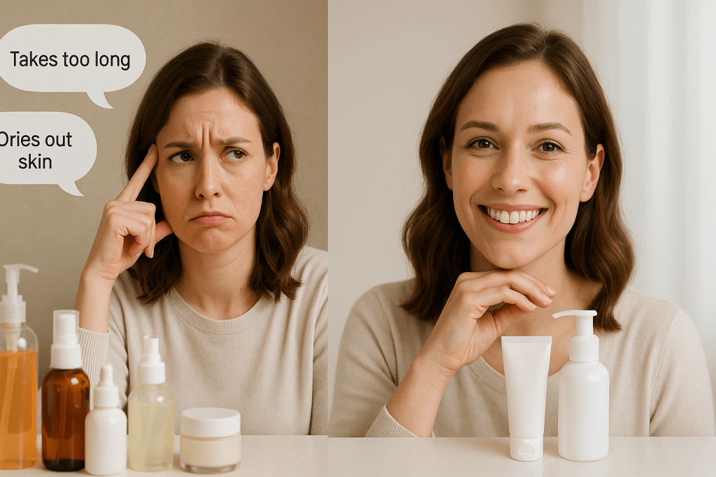 Not true if you’re using the right products. In fact, oil cleansers can help maintain the skin barrier. - “It takes too long.”