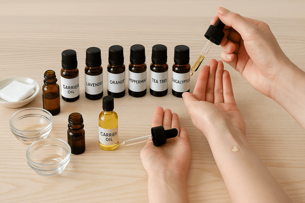 Remember the golden rule: always dilute essential oils before applying them to skin. Mix three to six drops of essential oil with one tablespoon of carrier oil like sweet almond, grapeseed, or coconut oil. This protects your skin while maintaining the oil’s therapeutic benefits.