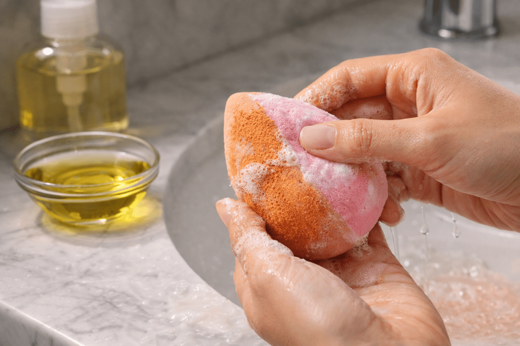 Your beauty sponge absorbs liquid foundation, concealer, cream blush, and even skincare products. Without regular washing, this trapped product becomes a breeding ground for bacteria, mold, and oil buildup.