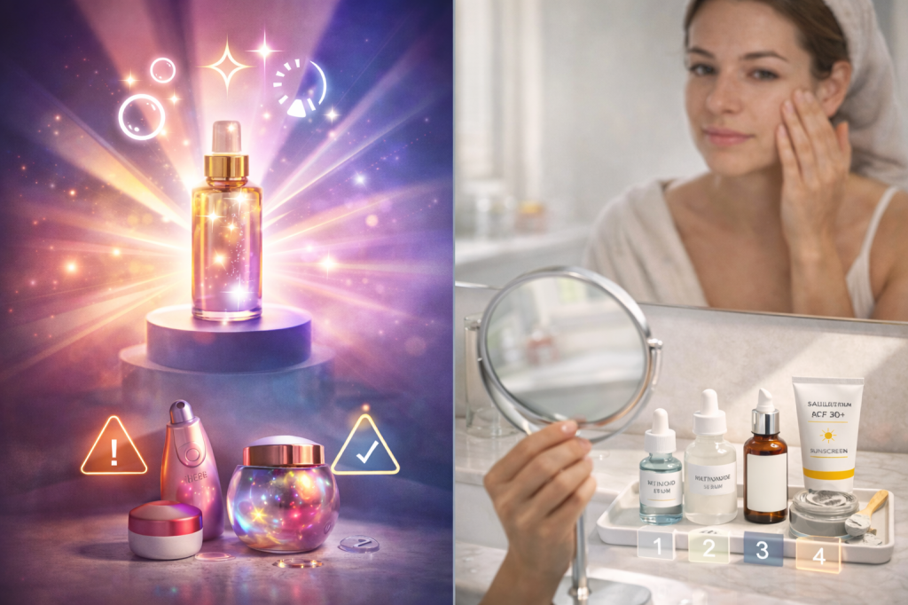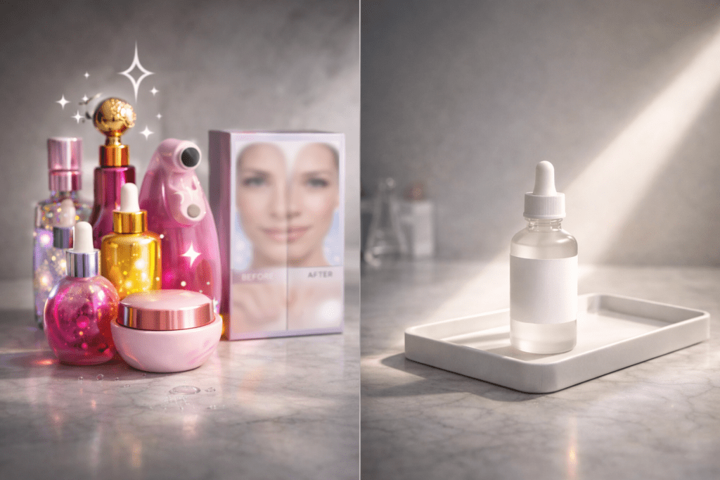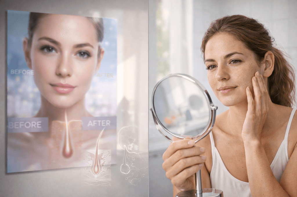 Those impossibly smooth “after” photos? Often heavily edited or filtered, not realistic results. Real skin has texture — anyone promising otherwise is selling you a fantasy.