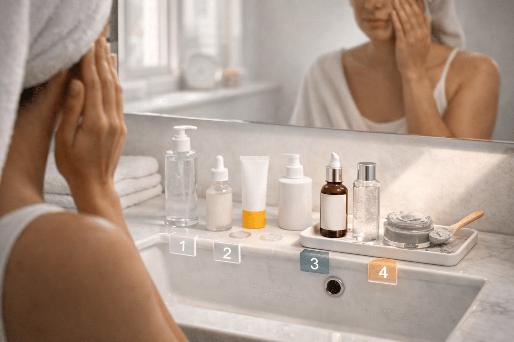 If your skin tolerates active ingredients, here’s a realistic routine that actually works: