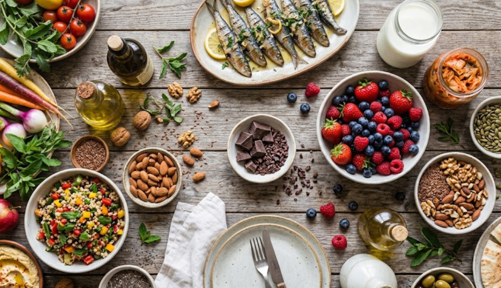 A Mediterranean-style approach consistently stands out in both epidemiological and mechanistic research as favourable for gut and skin health alike. The core pillars for skin-focused microbiome support include: